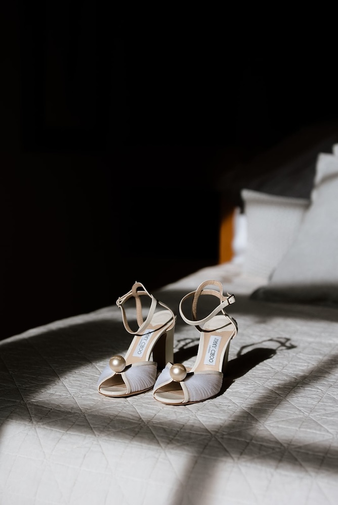 A Jimmy Choo wedding shoe is about balance: beautiful lines, premium materials, and construction that feels stable underfoot. Uppers are cut from fine satins, nappa leathers, and suedes; counters and straps are positioned to hold the foot; heels are set to keep your weight centred. The result is a shoe that looks delicate yet wears securely from aisle to last dance. If you want a touch of ornament, a Jimmy Choo pearl wedding shoe (think pearl-trim straps or pearl-kissed sandals) adds light and texture without bulk.