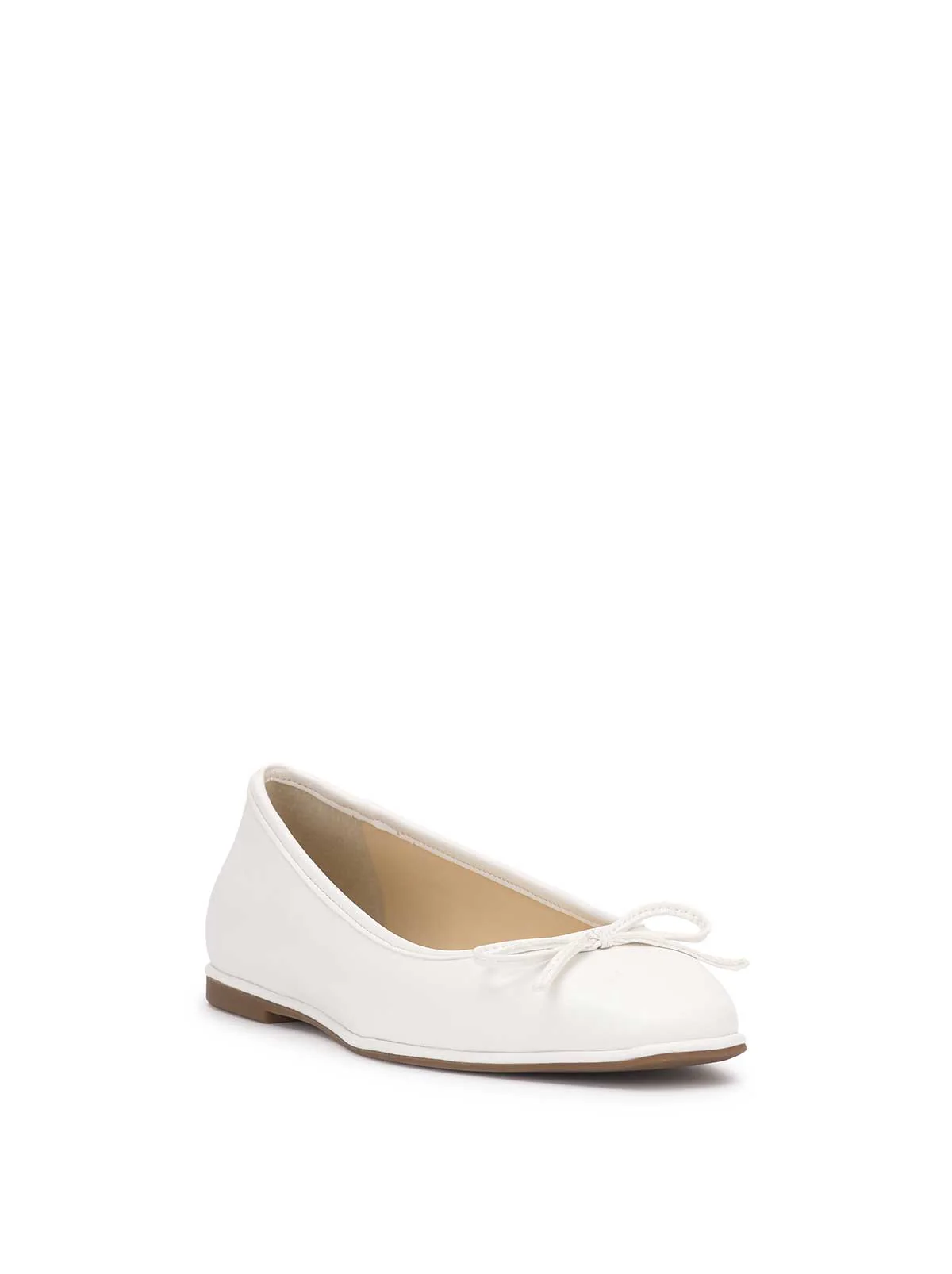 The Vayrina is the comfort option in the Jessica Simpson wedding lineup — a classic ballet flat with a delicate bow that offers elegant simplicity for brides who want to skip the heels entirely or need a reliable backup for dancing.